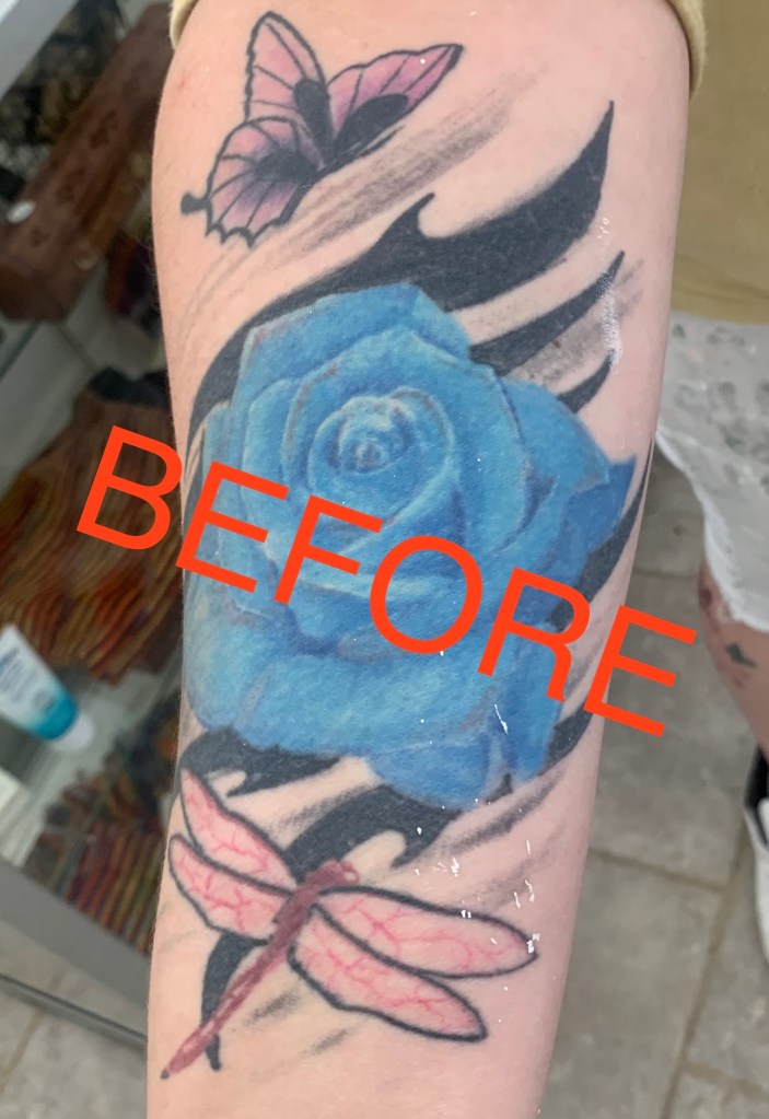 If you are looking to get an old tattoo covered up or reworked, let’s have a consultation and come up with some ideas on the best design for you. Below are some examples of past clients I have helped update their tattoos. To book a consultation, fill out the tattoo request form on the contact page.